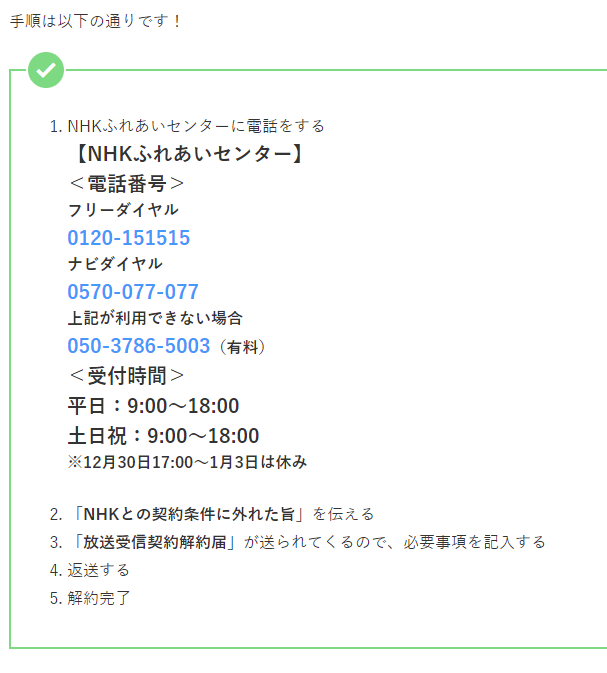 まず、NHKの受信料窓口(0120-151515)に電話。
